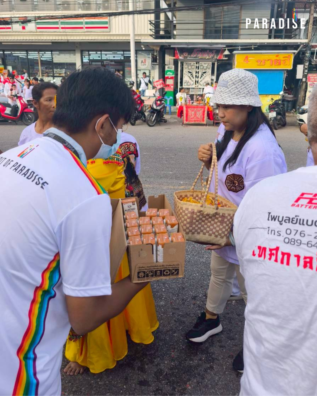 บริษัท พาราไดซ์ เอ็กซ์ คอร์ปเปอเรชั่น จำกัด พร้อมกับ คู่ค้า บริษัท ไทยกูลิโกะ จำกัด ร่วมกิจกรรมร่วมส่งเสริมงานประเพณีถือศีลกินผัก (กินเจ) จังหวัดภูเก็ต พร้อมด้วยทีมจิตสาธารณะในพื้นที่ ร่วมมอบสินค้า นม กูลิโกะ อัลมอนด์ โคกะ กับผู้ร่วมขบวน แห่พระรอบเมือง โดยมีทีมงาน จิตสาธารณะ ซี.พ.ออล์ พร้อม ทีมผู้บริหาร ของ บริษัทฯ เดินหน้าตามปณิธานองค์กร " Giving and Sharing " ของ ซีพี ออลล์